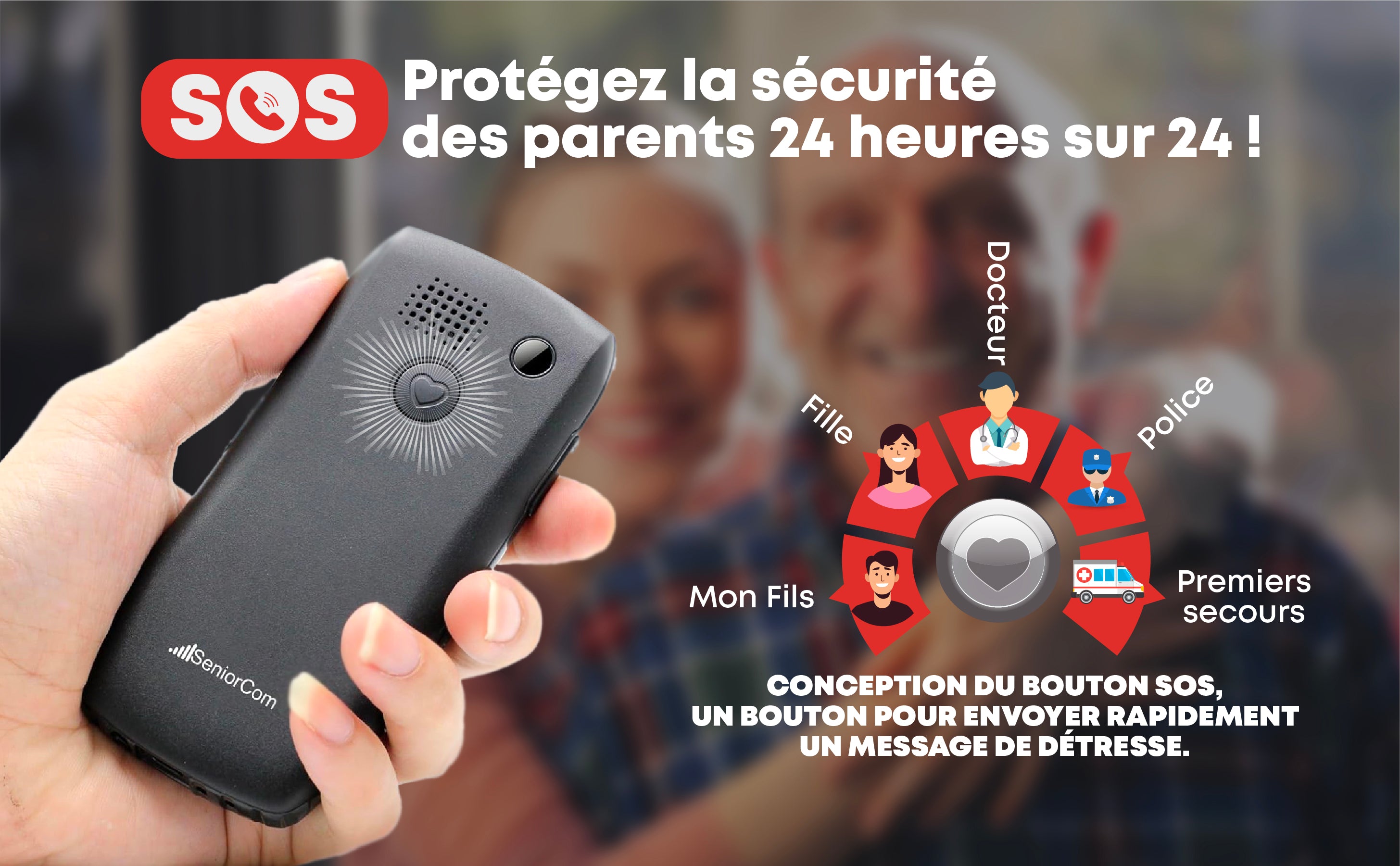 Fonction SOS intégrée pour les urgences, permettant aux utilisateurs d'appeler rapidement à l'aide en appuyant sur un seul bouton.