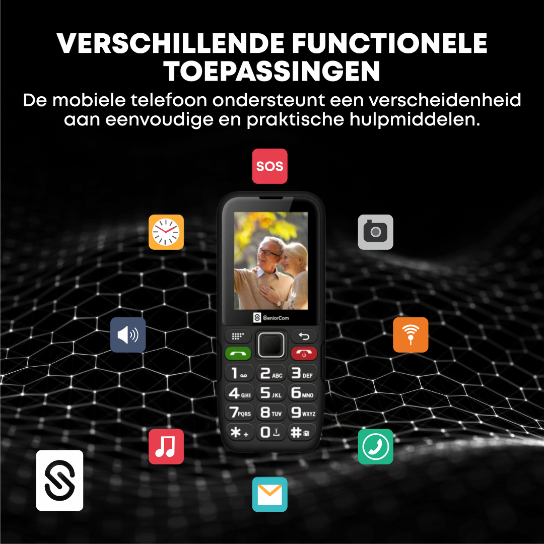 De SeniorCom T24 biedt niet alleen gebruiksgemak met zijn grote toetsen en overzichtelijk menu, maar ook nuttige hulpmiddelen zoals een SOS-knop voor noodgevallen, een ingebouwde camera, en fotocontacten voor snelle en persoonlijke toegang tot belangrijke nummers. Alles is ontworpen om de dagelijkse communicatie eenvoudig en veilig te maken.